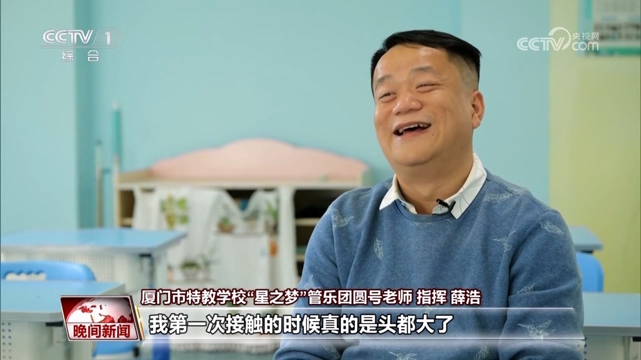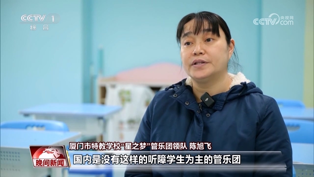 廈門市特教學(xué)?!靶侵畨?mèng)”管樂(lè)團(tuán)領(lǐng)隊(duì) 陳旭飛:據(jù)我所知的話,國(guó)內(nèi)是沒(méi)有這樣的聽(tīng)障學(xué)生為主的管樂(lè)團(tuán)。