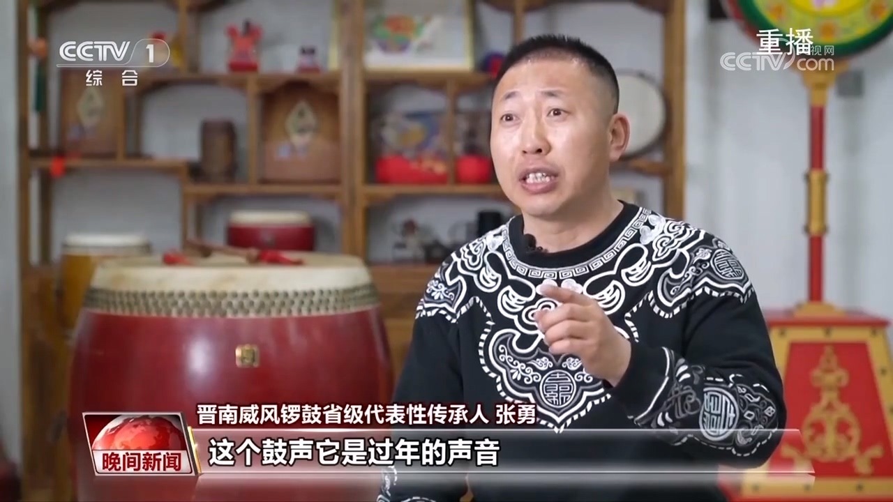 晉南威風鑼鼓省級代表性傳承人 張勇:這個鼓聲是過年的聲音,也是扎根在每一個臨汾人心里頭,一種故鄉(xiāng)的聲音。人的一輩子所有大事,都會有鼓的出現(xiàn)。