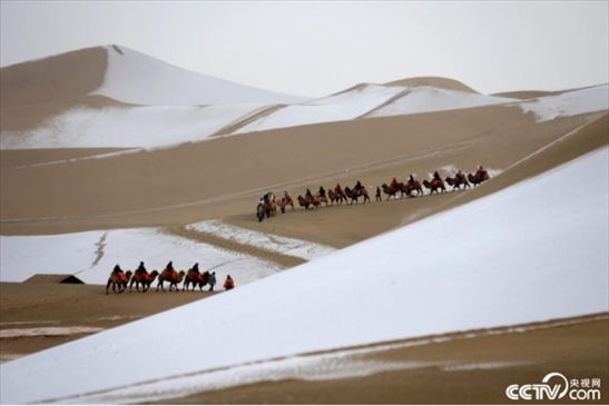 2024年1月24日,受冷空氣影響,甘肅省敦煌市迎來(lái)今年首場(chǎng)降雪。