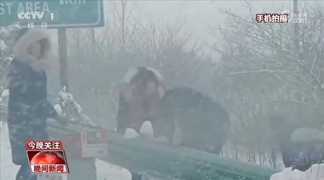 同樣的故事,在一條條受雨雪冰凍天氣影響的回家路上接連上演。在湖北仙桃,滬渝高速三伏潭段的積雪結冰嚴重。不少過往車輛滯留在高速公路沿線。當地村民也自發(fā)地為滯留群眾提供各種幫助。