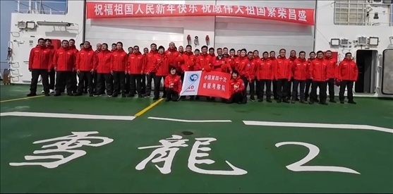 ·“雪龍2”號隊員在地球最南端送上新春祝福。