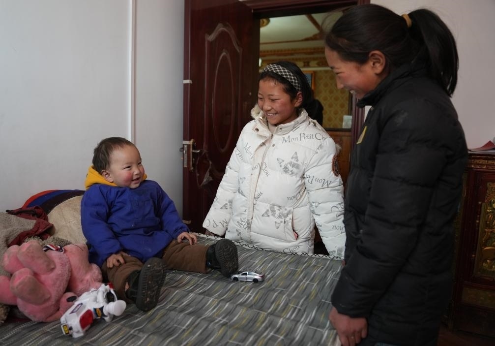 今年冬天,桑措家里的每個臥室里都安裝了電暖氣片,兩個孫女在自己的房間里寫作業(yè)也不怕被打擾。桑措的丈夫在另一個房間里抱著10個月的孫子。桑措說:“全家人再也不用圍著牛糞爐子,擠在客廳里睡覺了,家里也更加干凈整潔。”