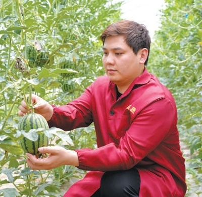 徐鋒在給實(shí)驗(yàn)品種西瓜整枝疏果。受訪者供圖