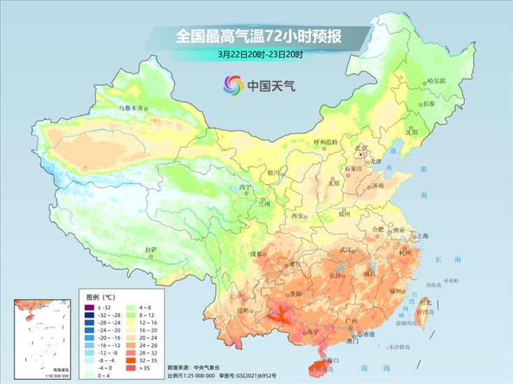 而江南、華南一帶的氣溫高點多出現(xiàn)在23日至25日,屆時不少地方最高氣溫將沖到30℃以上,暖熱程度遠超常年同期。大城市中,杭州25日最高氣溫或達32℃,打卡初夏體驗;福州24、25日最高氣溫可能達到34℃,距離高溫只有“一步之遙”。