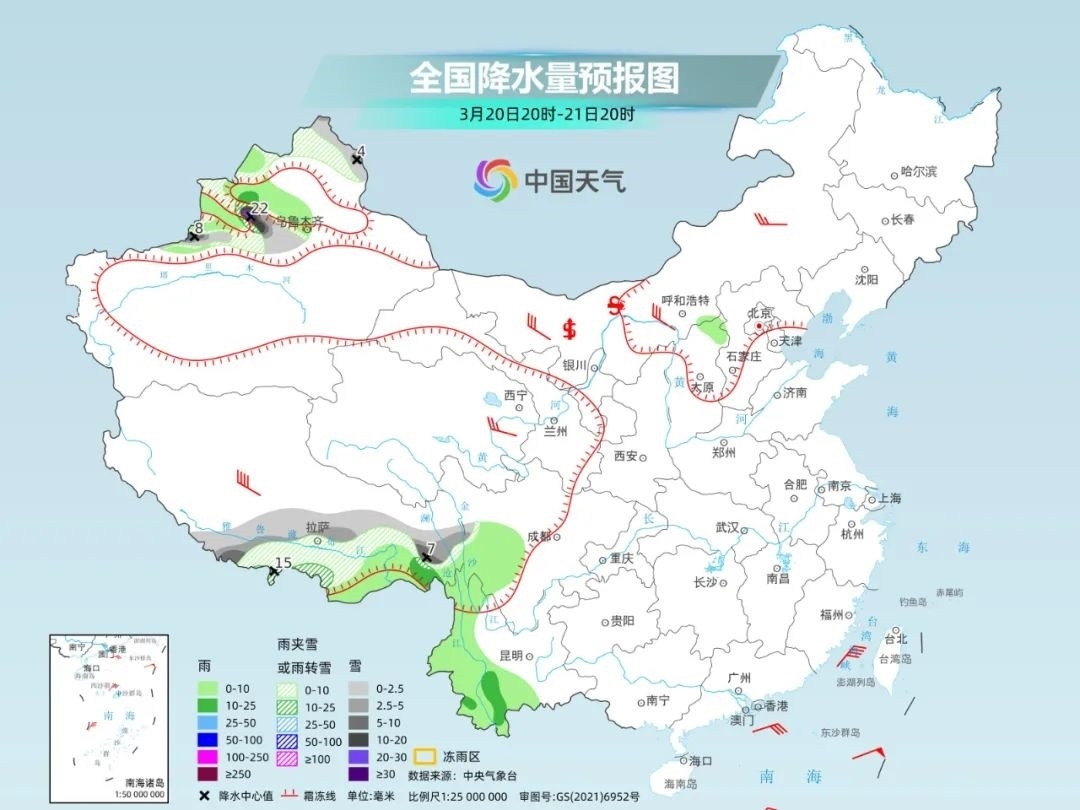西北地區(qū)東部、華北、黃淮、江淮等地,氣溫高點大多將出現(xiàn)在明后兩天,最高氣溫20℃線最北能推進到華北中部,黃淮、江淮一帶最高氣溫將達到25℃上下。像是蘭州,21日最高氣溫可能達到23℃,如果兌現(xiàn)將是今年首次突破20℃。西安22日最高氣溫或升至24℃,暖出常年5月上旬的感覺。