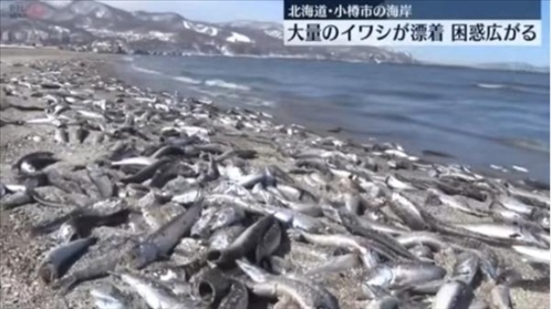 ·日本一海灘現(xiàn)沙丁魚(yú)尸體綿延7公里,當(dāng)?shù)卣粲蹙用癫灰|碰死魚(yú)。