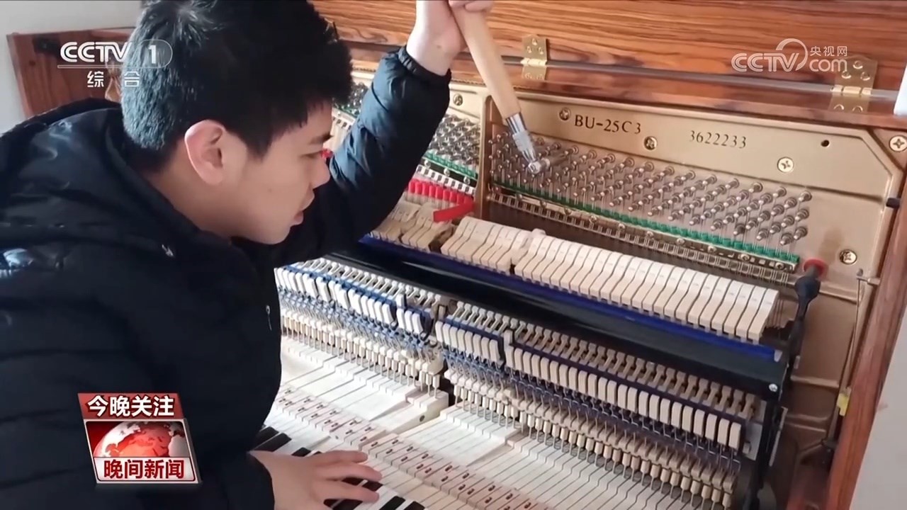 抱著試一試的想法,田偉找到了康復機構的一位鋼琴老師,沒想到6歲的笑笑只用一周就學會了看簡譜。不光記憶力很好,笑笑的聽力更是超乎常人。用鋼琴同時彈5個音,他立即能報出是哪幾個音,初二時他就考過了鋼琴十級。后來,田偉帶著笑笑在山東一家專業(yè)學校,學習鋼琴調律,此時他的劣勢反而變成了優(yōu)勢。