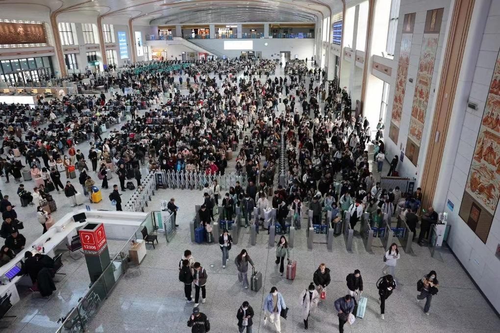 假期期間的淄博火車(chē)站候車(chē)大廳。(淄博市張店區(qū)委宣傳部供圖)