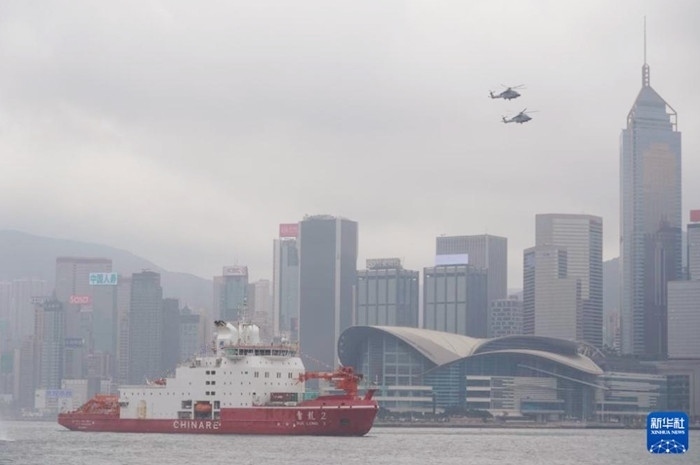 4月8日,“雪龍2”號緩緩駛?cè)胂愀奂馍尘缀_\(yùn)碼頭,展開為期5天的首次訪港行程。