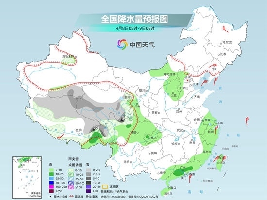 央視網(wǎng)消息:據(jù)中國(guó)天氣網(wǎng)消息,預(yù)計(jì)今天(4月8日),江南、華南等地降雨將明顯減少減弱,迎來(lái)降雨間歇期。但在青藏高原中東部,未來(lái)三天仍將出現(xiàn)持續(xù)性雨雪天氣。此外,今明兩天,東北、華北等地在冷空氣以及降水的影響下,氣溫將普遍下降。冷空氣過(guò)后,上述地區(qū)氣溫又會(huì)快速回升。