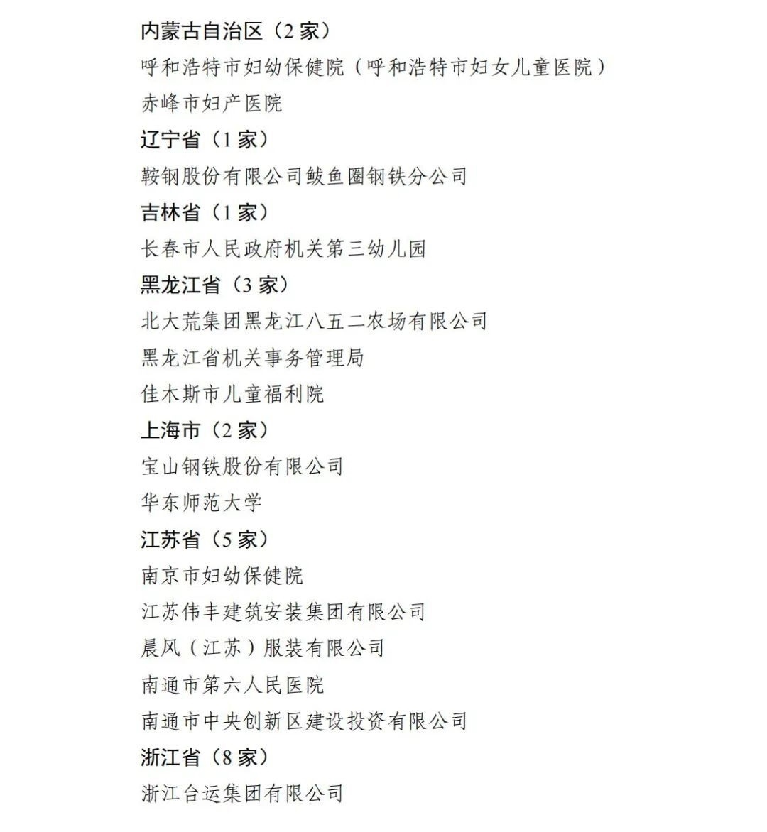 中新網(wǎng)4月8日電 據(jù)國(guó)家衛(wèi)健委微信公眾號(hào)消息,根據(jù)《中華全國(guó)總工會(huì)辦公廳 國(guó)家衛(wèi)生健康委辦公廳關(guān)于推薦申報(bào)2023年全國(guó)愛(ài)心托育用人單位的通知》要求,經(jīng)申報(bào)、推薦、審核、評(píng)審、公示等程序,中華全國(guó)總工會(huì)、國(guó)家衛(wèi)生健康委決定公布北京首鋼實(shí)業(yè)集團(tuán)有限公司等100家用人單位為2023年全國(guó)愛(ài)心托育用人單位。