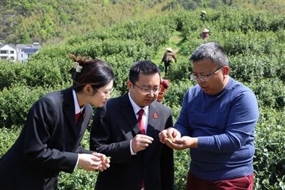 草木蔓發(fā),春山可望。浙江省金華市婺州舉巖茶基地迎來(lái)了春茶采摘季。近日,金華市婺城區(qū)人民法院干警來(lái)到基地,回訪采云間公司,了解該公司重整成功后的春茶開(kāi)采工作。