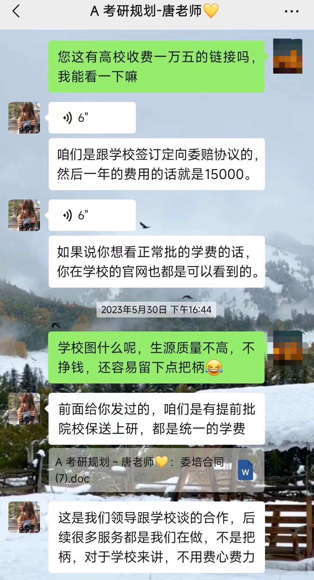 “我和我丈夫都報(bào)名了,一共是支付了33600元的學(xué)費(fèi)?!蓖跖空f(shuō),在報(bào)名后她收到了一份《網(wǎng)絡(luò)培訓(xùn)服務(wù)協(xié)議》,她仔細(xì)閱讀協(xié)議后發(fā)現(xiàn)其中并未提及招生老師所承諾的“院校推優(yōu)項(xiàng)目”。“我提出質(zhì)疑后,招生老師就以這些內(nèi)容太敏感,不能寫(xiě)在合同里來(lái)解釋?zhuān)疫€提供了往年成功的案例作為證明,讓我放心?!?/p>