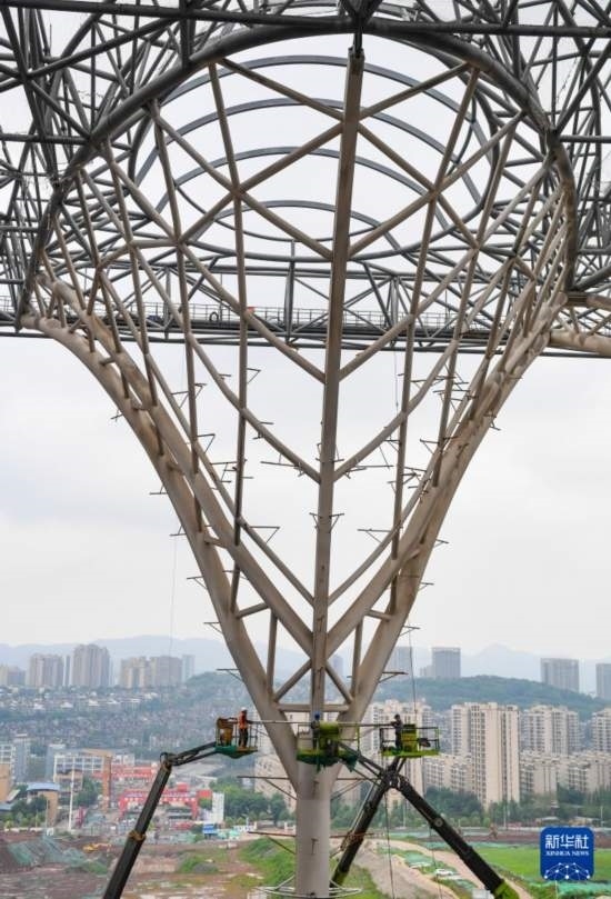5月1日,工人在重慶東站站房及配套綜合交通樞紐工程二標段項目作業(yè)。