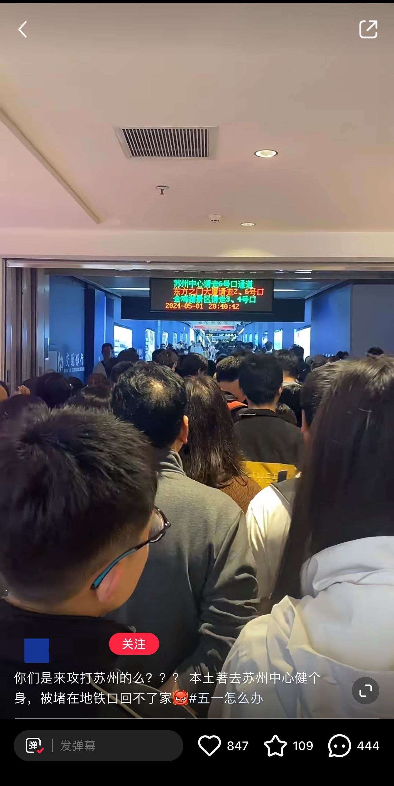 熱門旅游目的地的當(dāng)?shù)厥忻駝t“叫苦不迭”。有蘇州的網(wǎng)友發(fā)布視頻稱自己出門健身,被堵在地鐵口“回不了家”。