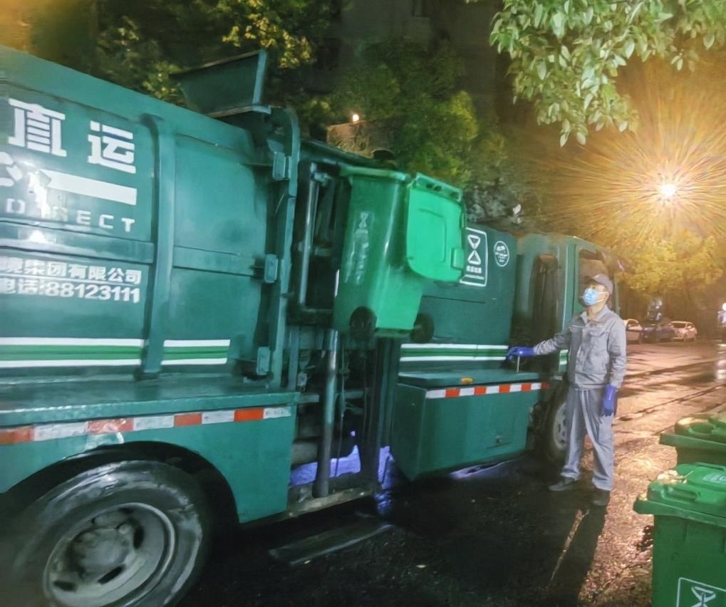 2024年5月4日凌晨,杭州市環(huán)境集團(tuán)清運(yùn)車駕駛員朱國(guó)棟在清運(yùn)垃圾。(杭州市環(huán)境集團(tuán)供圖)