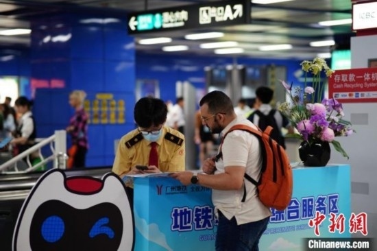 廣交會期間,廣州地鐵提供更便捷、多元化的出行保障,包括設(shè)置“綜合服務區(qū)”,提供現(xiàn)場咨詢、外語翻譯、票務導購等多元服務。廣州地鐵集團供圖