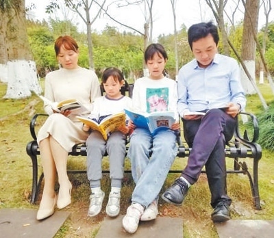 “開始看書啦!”晚上9點(diǎn),陳靜做完家務(wù),招呼丈夫賀瑋杰和兩個(gè)女兒到書架上各自取書,在客廳圍坐在一起,閱讀分享。這樣的親子時(shí)光,在重慶市榮昌區(qū)市民陳靜家已是尋常。兩個(gè)80后帶著兩個(gè)10后,每周一次家庭閱讀分享會(huì),每年一份家庭心愿書單……一家人在書香中共同成長。