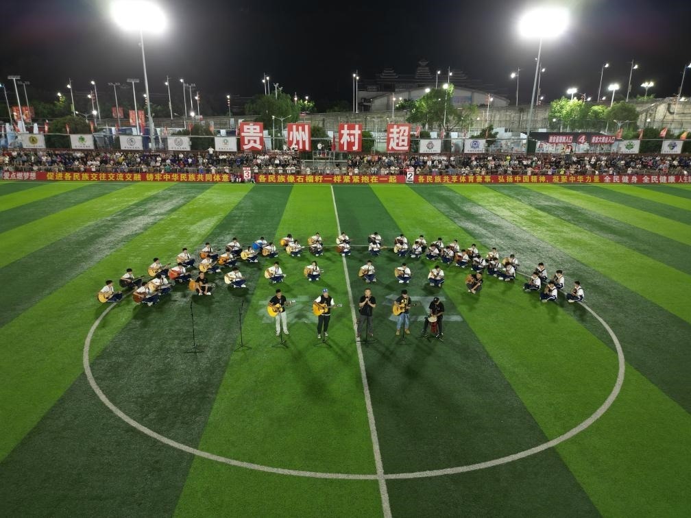 遼寧東港草莓足球隊帶來嗩吶表演、中山大學(xué)鳳慶滇紅茶足球隊帶來蘆笙舞、畢節(jié)南山羊肉粉足球隊帶來彝族舞蹈……在“帶著非遺上村超”“來村超約場球”等活動的聚力匯智作用下,榕江攜手各地推動了“村超”流量的共建共享。