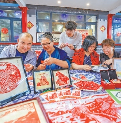 自2018年建成以來,石峽村村史博物館成為村民定期培訓的地方,也逐漸成為游客來石峽村游玩的打卡地之一。博物館以實物、文字、影像等方式展現(xiàn)了村落歷史、非遺項目、居家生活、農(nóng)耕勞作等內(nèi)容?!拔覀冞€推出了帶有長城元素的布藝、剪紙、羽毛畫等互動體驗項目?!辈┪镳^負責人魏曉蕓說。