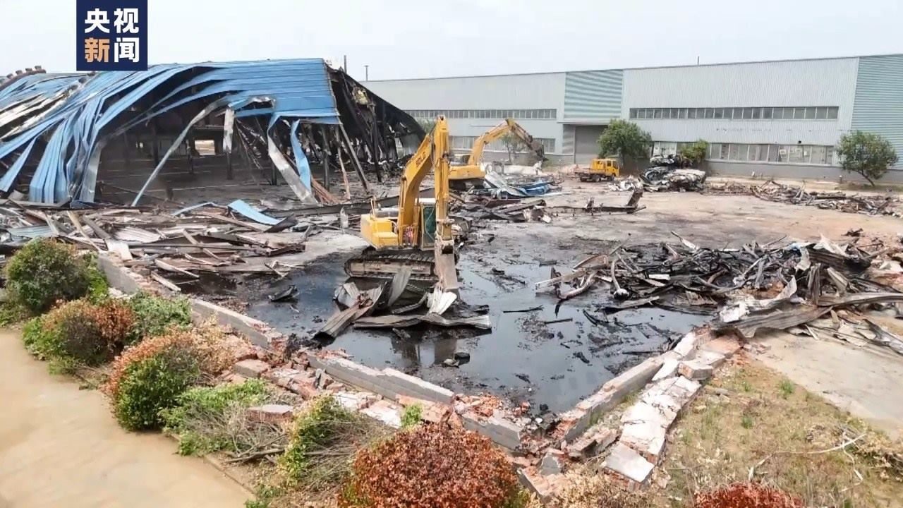 5月25日晚上7點(diǎn)多,總臺(tái)記者按照知情人的指引,趕往富信石油倉(cāng)庫(kù)所在地,全椒經(jīng)開(kāi)區(qū)經(jīng)二路東側(cè)的三期標(biāo)準(zhǔn)化廠房調(diào)查。此處共有6棟廠房,占地42畝,于2012年建成,廠房歸全椒百盛金屬科技有限公司所有,現(xiàn)租賃給當(dāng)?shù)厮募移髽I(yè)使用。發(fā)生火災(zāi)的2號(hào)廠房,目前已被部分拆解。環(huán)境監(jiān)測(cè)人員正在現(xiàn)場(chǎng)提取污水樣本。一旁的庫(kù)房?jī)?nèi)仍然堆積了許多裝滿(mǎn)不明液體的塑料桶。空氣中彌漫著刺鼻的化學(xué)品氣味。