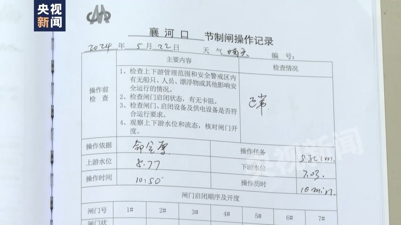 記者在安徽省駟馬山引江工程襄河口閘管理所的節(jié)制閘操作記錄本上看見(jiàn),發(fā)現(xiàn)在5月18日上午,這里的節(jié)制閘原本已處于完全關(guān)閉狀態(tài)。然而在發(fā)現(xiàn)水體污染的兩天后,5月22日上午10點(diǎn)50分,襄河口七孔節(jié)制閘中的五孔開(kāi)閘,在閘前聚集兩天的污水一路暢通地進(jìn)入滁河。這一次放水直至5月23日15點(diǎn)50分結(jié)束,時(shí)間長(zhǎng)達(dá)29個(gè)小時(shí)。