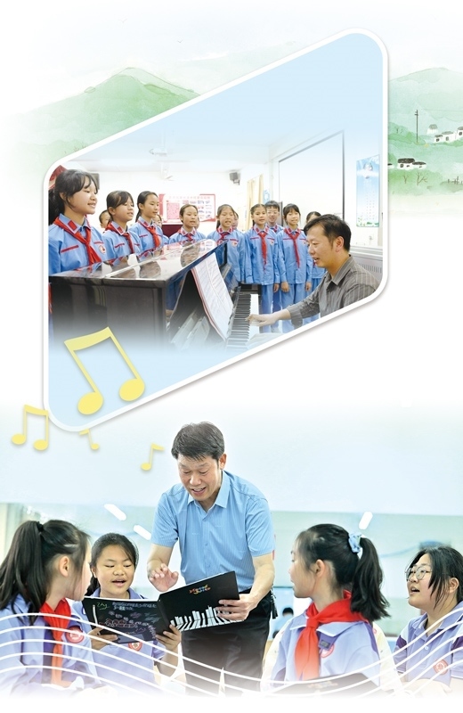 上圖:江西興國縣蕭華紅軍小學(xué)小紅星合唱團正在練習(xí)。李 玲攝 下圖:湖北宣恩縣博雅實驗學(xué)校土家娃合唱團負(fù)責(zé)人廖光新在指導(dǎo)學(xué)生。陳緒開攝