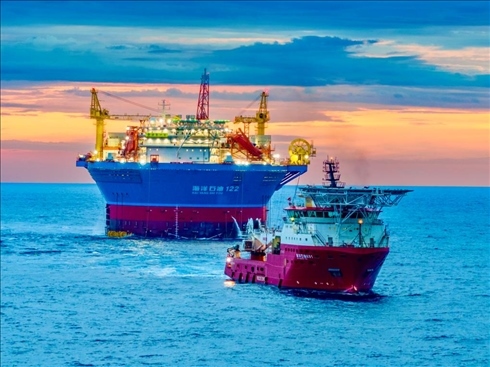 ·我國自主設(shè)計(jì)建造的亞洲首艘圓筒型“海上油氣加工廠”——“??惶?hào)”運(yùn)抵作業(yè)海域。