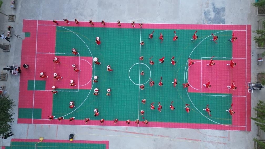 5月27日,肖紅坪小學的學生正在排練鼓樂表演(無人機照片)。新華社記者張智敏 攝