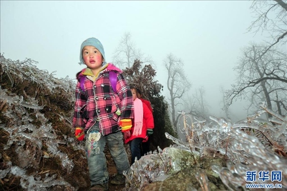 廣西桂林市全州縣蕉江瑤族鄉(xiāng)大源村位于桂北高寒山區(qū)。每年隆冬時(shí)節(jié),孩子們都要在老師和家長的護(hù)送下,在一片冰天雪地中踏上求學(xué)之路。