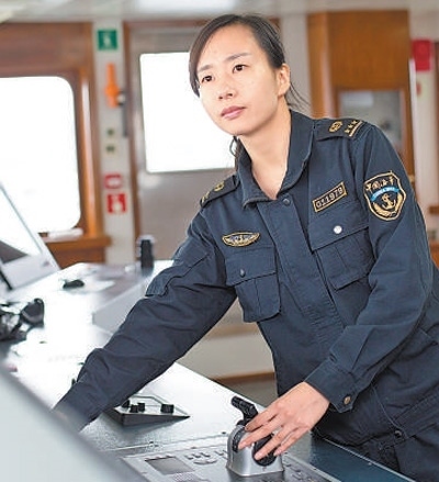 海面波濤滾滾,船來船往。眼前這位看上去瘦瘦高高、安靜內(nèi)斂的90后姑娘,站在寬敞明亮的駕駛臺,一邊手持對講機(jī)指揮船員,一邊拿起望遠(yuǎn)鏡觀察,全程神情專注、有條不紊。