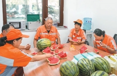 6月11日,山東省濟(jì)南市繼續(xù)發(fā)布高溫紅色預(yù)警信號。為應(yīng)對持續(xù)高溫天氣,濟(jì)南市城管部門采取調(diào)整作業(yè)時間、配發(fā)防暑降溫物品、增加歇腳點(diǎn)等措施,保障環(huán)衛(wèi)工人健康。圖為環(huán)衛(wèi)工人在濟(jì)南市槐蔭區(qū)一處歇腳點(diǎn)內(nèi)休息。新華社記者 朱 崢攝