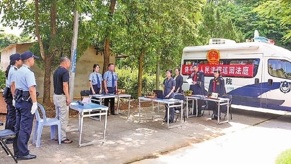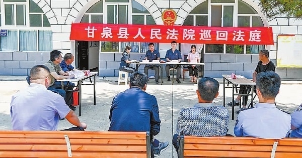 近日,陜西省甘泉縣人民法院道鎮(zhèn)人民法庭在審理一起侵害集體經濟組織成員權益糾紛案件時,考慮到本案為該區(qū)域多發(fā)常見類糾紛,遂將巡回審判庭搬進道鎮(zhèn)五里橋村,在窯洞前就地審理。庭審中,法官充分聽取雙方當事人意見,就爭議焦點進行釋法明理。經過一個多小時的調解,雖因雙方訴求差距過大未最終達成調解協(xié)議,但極大緩和了雙方矛盾。下一步,法官將繼續(xù)就雙方當事人的訴求研判方案,組織調解。庭審結束后,法官向群眾介紹了本案相關的法律規(guī)定,就大家關心的法律問題進行答疑解惑。圖為巡回審判現場。(本報記者 劉輝 本報通訊員 李樂 攝)