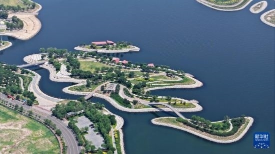這是6月28日拍攝的天津市濱海新區(qū)南灣公園一景(無(wú)人機(jī)照片)。