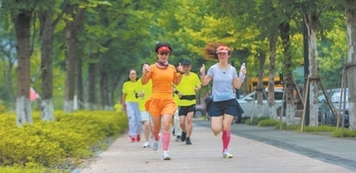 幸福道內(nèi)蒙古呼和浩特市,市民在綠道散步。王 正攝(人民視覺(jué))