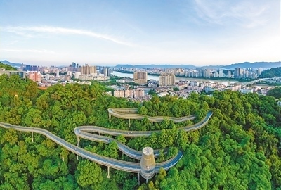 生態(tài)道福建福州市在建設(shè)“福道”時(shí),采取鋼結(jié)構(gòu)高架、鏤空橋面棧道、節(jié)點(diǎn)大跨度橋梁等創(chuàng)新設(shè)計(jì),最大限度保護(hù)森林原生態(tài)。林雙偉攝(人民視覺(jué))