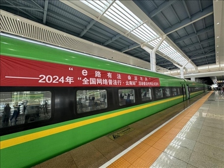 人民網昆明8月22日電 (孝金波、高清揚)今日,2024年“全國網絡普法行·云南站”活動在昆明啟動。作為活動的一大亮點,在昆明南站始發(fā)的“e路有法 命運與共”普法專列滿載著法律知識,沿著中老鐵路這一國際大通道,為乘客們打造了別開生面的普法之旅。