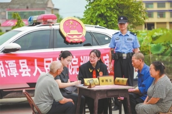 花石法庭與當地司法所、派出所、律師事務所聯合村委會就該案開展了分析研判,多次組織雙方當事人協商,一直未達成協議。為避免糾紛久拖不決,同時考慮到雙方是幾十年的鄰居,法官決定將庭審“搬”至當事人家門口。