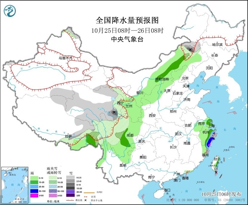 另外,10月25日至28日,受弱冷空氣影響,西北地區(qū)中東部、華北地區(qū)、內(nèi)蒙古、東北地區(qū)等地部分地區(qū)將有3~6℃降溫,西北地區(qū)東部、內(nèi)蒙古中部部分地區(qū)可達8℃以上;青藏高原東部有小到中雪或雨夾雪,青海東南部、川西高原北部、內(nèi)蒙東部等地局地大到暴雪。