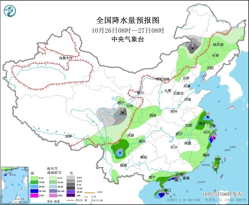 預計10月26日,江蘇中南部、安徽東南部、上海大部、浙江東部、廣東西南部沿海、海南島、臺灣島大部等地部分地區(qū)有中到大雨,其中,江蘇中部、浙江東部沿海、廣東西南部沿海、海南等地部分地區(qū)有暴雨或大暴雨。