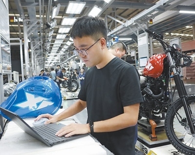 “哪個環(huán)節(jié)的裝配參數(shù)和給定值不吻合,系統(tǒng)就會自動報警,不再需要人工巡檢,效率得到大幅提升。”陳國靖說,得益于數(shù)智化生產(chǎn)線,每150秒就有一輛摩托車下線。