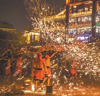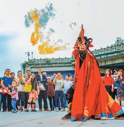 豐富文旅業(yè)態(tài)演員在進(jìn)行非遺表演。磁器口古鎮(zhèn)管委會供圖