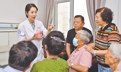 山東省濟南市第二人民醫(yī)院醫(yī)生為患者和家屬講解人工晶體國家集采政策。