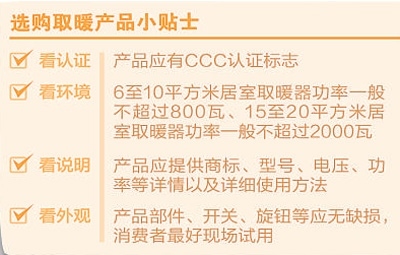 湖南省產(chǎn)商品質(zhì)量檢驗研究院家用電器質(zhì)量檢驗工程師周惟聞提醒消費者,可通過觀察、觸摸等方式發(fā)現(xiàn)產(chǎn)品缺陷,比如線纜過細過軟、外殼過薄等,取暖產(chǎn)品線纜也需要符合CCC認證,如果線纜上沒有規(guī)范標注認證標志、型號、參數(shù)等,盡量不要選購。