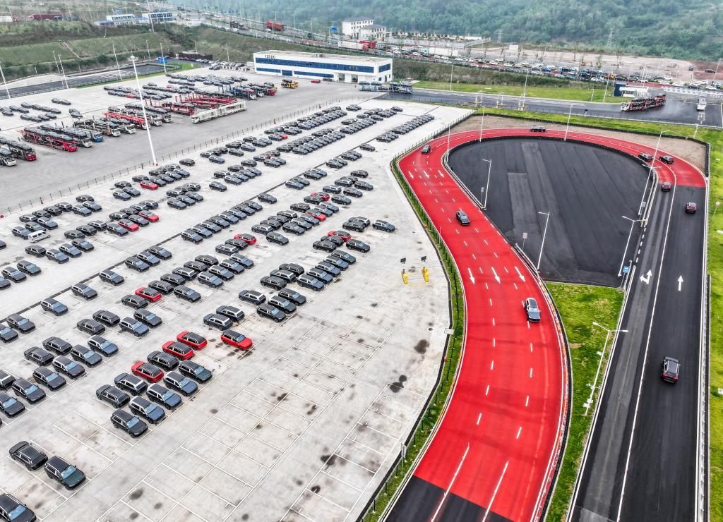 2024年11月6日在位于重慶市兩江新區(qū)的賽力斯超級工廠拍攝的新能源汽車(無人機照片)。新華社記者 王全超 攝