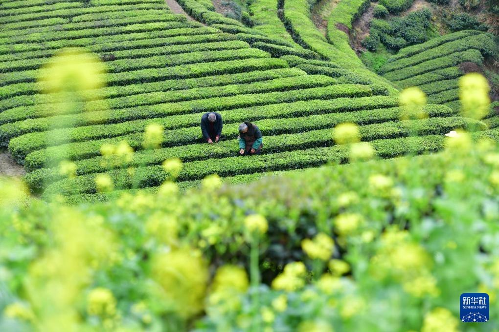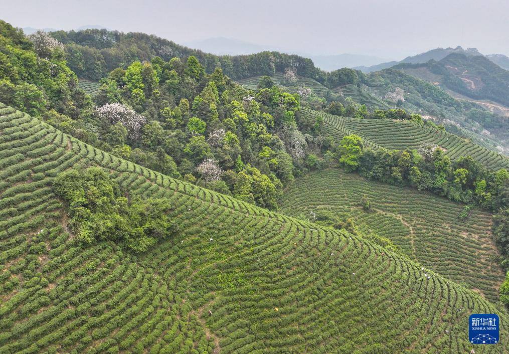 清明時節(jié)是春茶采摘旺季,茶農(nóng)在茶園內(nèi)忙碌,采制新茶供應(yīng)市場。