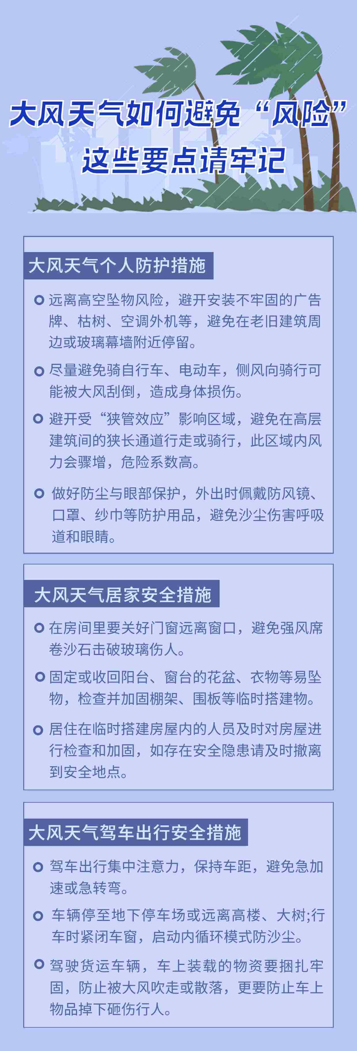 據(jù)氣象部門預(yù)報(bào),未來幾日,全國(guó)多地將出現(xiàn)強(qiáng)風(fēng)天氣,部分地區(qū)陣風(fēng)風(fēng)力可達(dá)12~13級(jí)。春季到來,大風(fēng)天氣增多,給我們的生活帶來了諸多安全隱患。該如何做好防范?一起來了解。