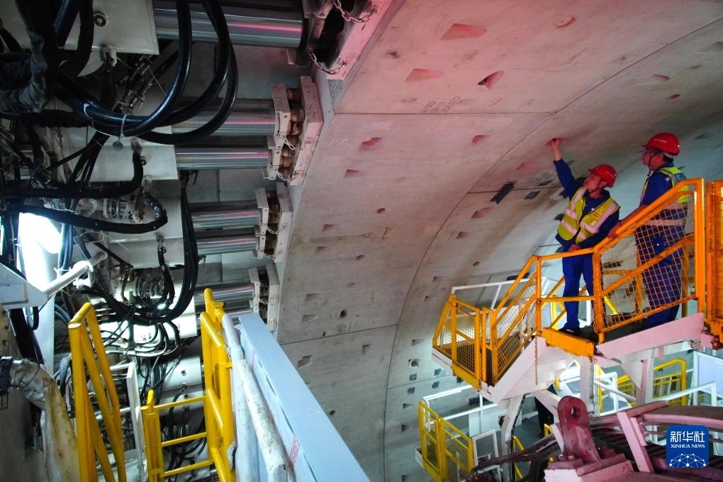 5月9日,中鐵十四局技術(shù)人員在“啟航號”盾構(gòu)機內(nèi)巡查。