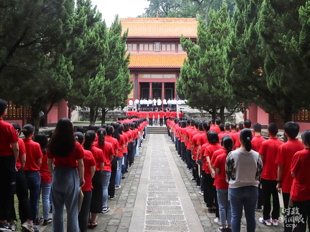 △岳麓書院2020級新生入學(xué)禮現(xiàn)場,142名新生齊聚大成殿前。(來源于岳麓書院官網(wǎng))