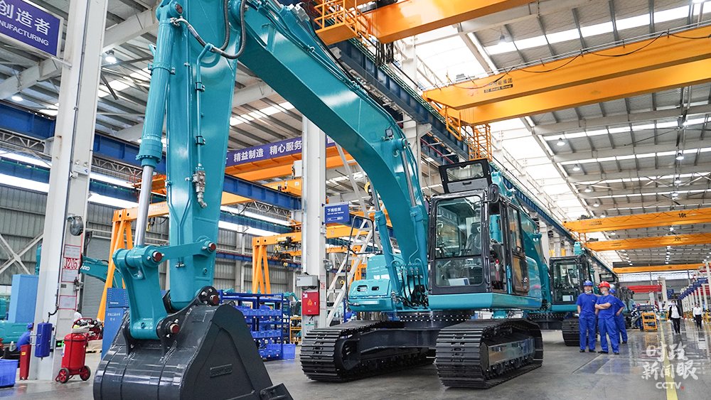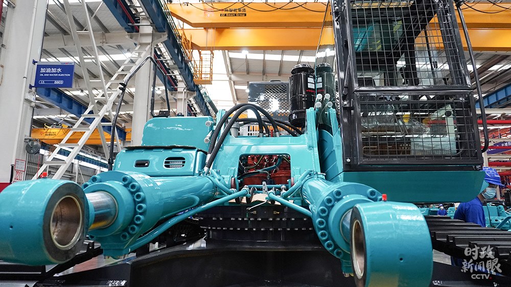 △山河智能生產(chǎn)車間組裝的大型挖掘機(jī),能適應(yīng)多種復(fù)雜地形作業(yè)。(總臺央視記者郭曉龍拍攝)